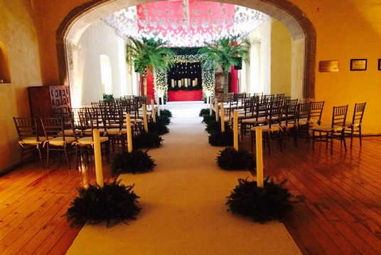 Ofrece capacidad para 100 personas en montaje lounge o auditorio para ceremonias civiles o bendiciones.